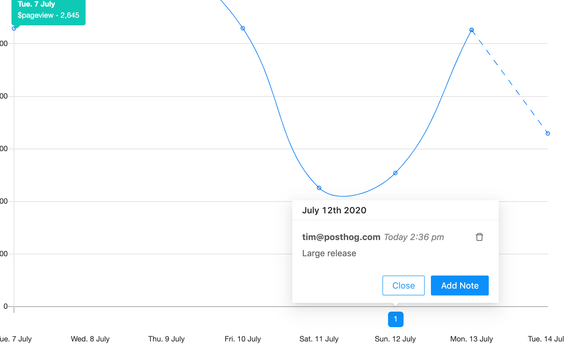Digging through git commits to find out what changed to make the graphs go hay-wire? No more! You can now annotate when something happened (a big release, a bugfix or a launch) and make it super easy for your team-mates to figure out what's going on.